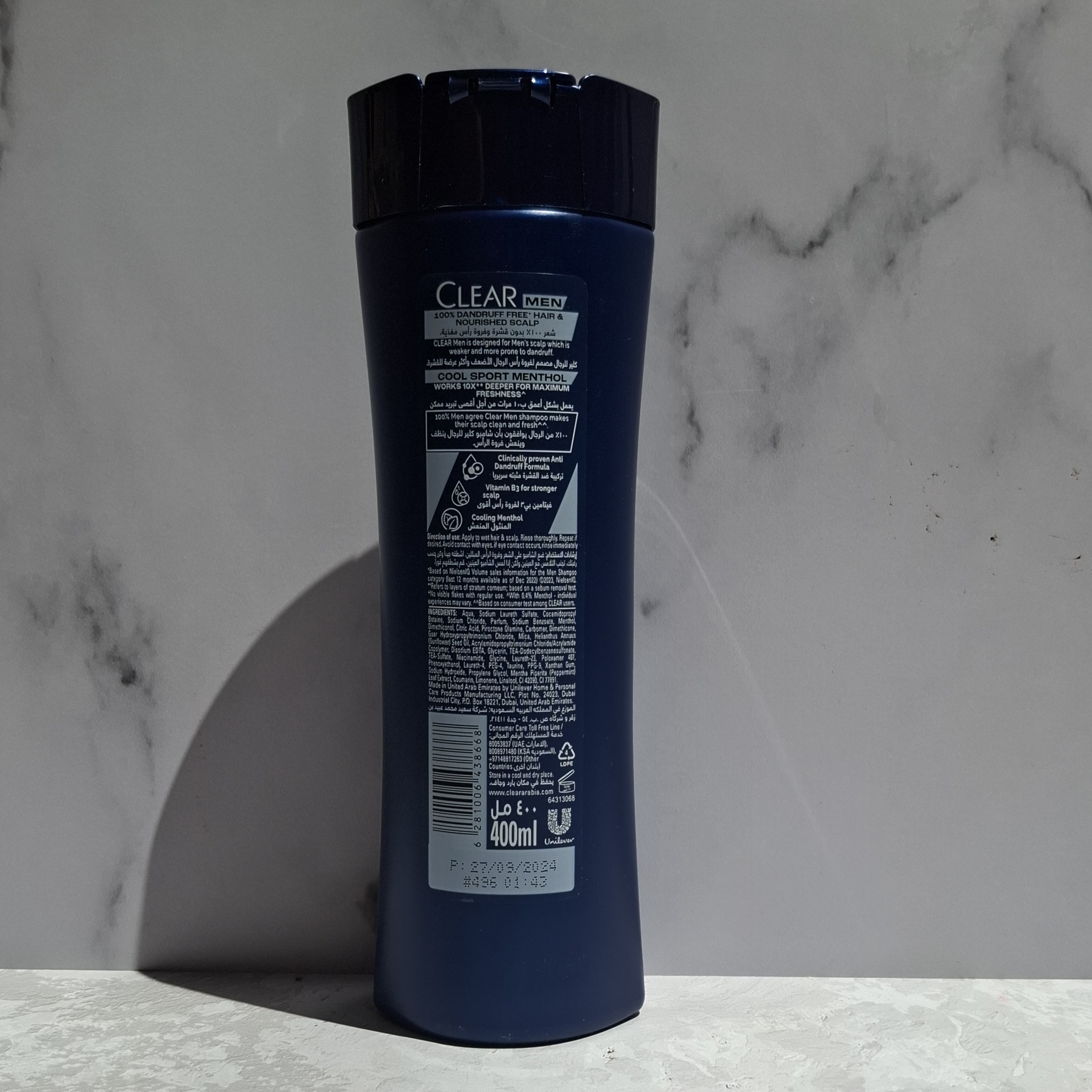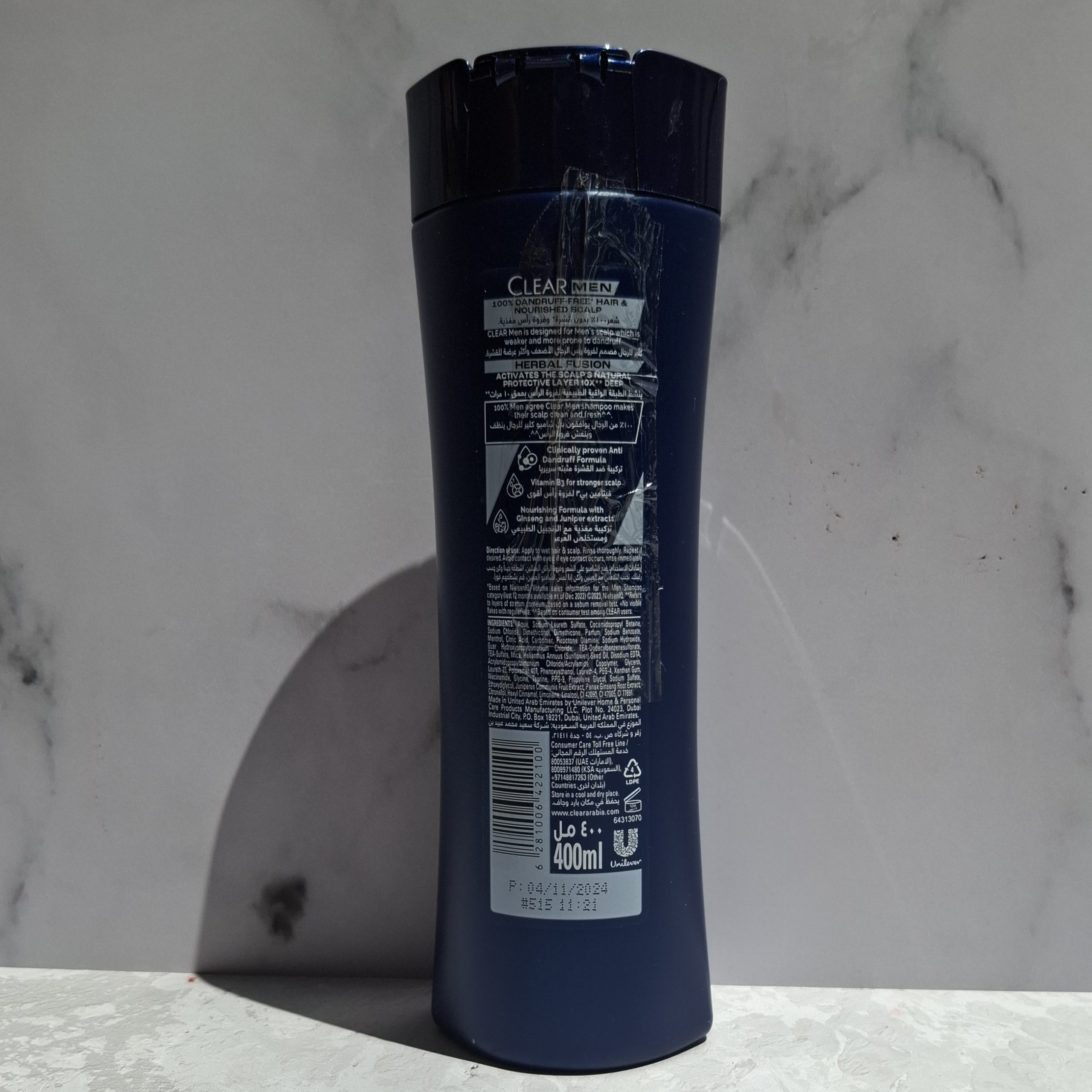 شامپو کلیر مردانه ۴۰۰ میل اورجینال در دو عصاره نعنا و جنسینگ